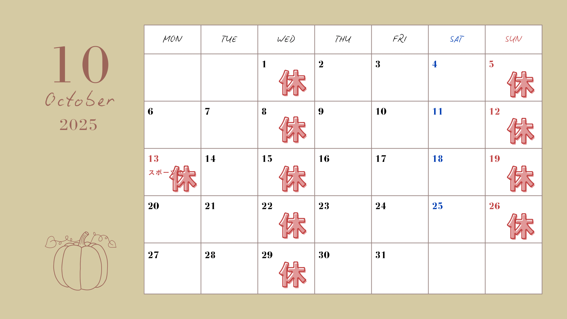 令和7年10月休診日のお知らせ